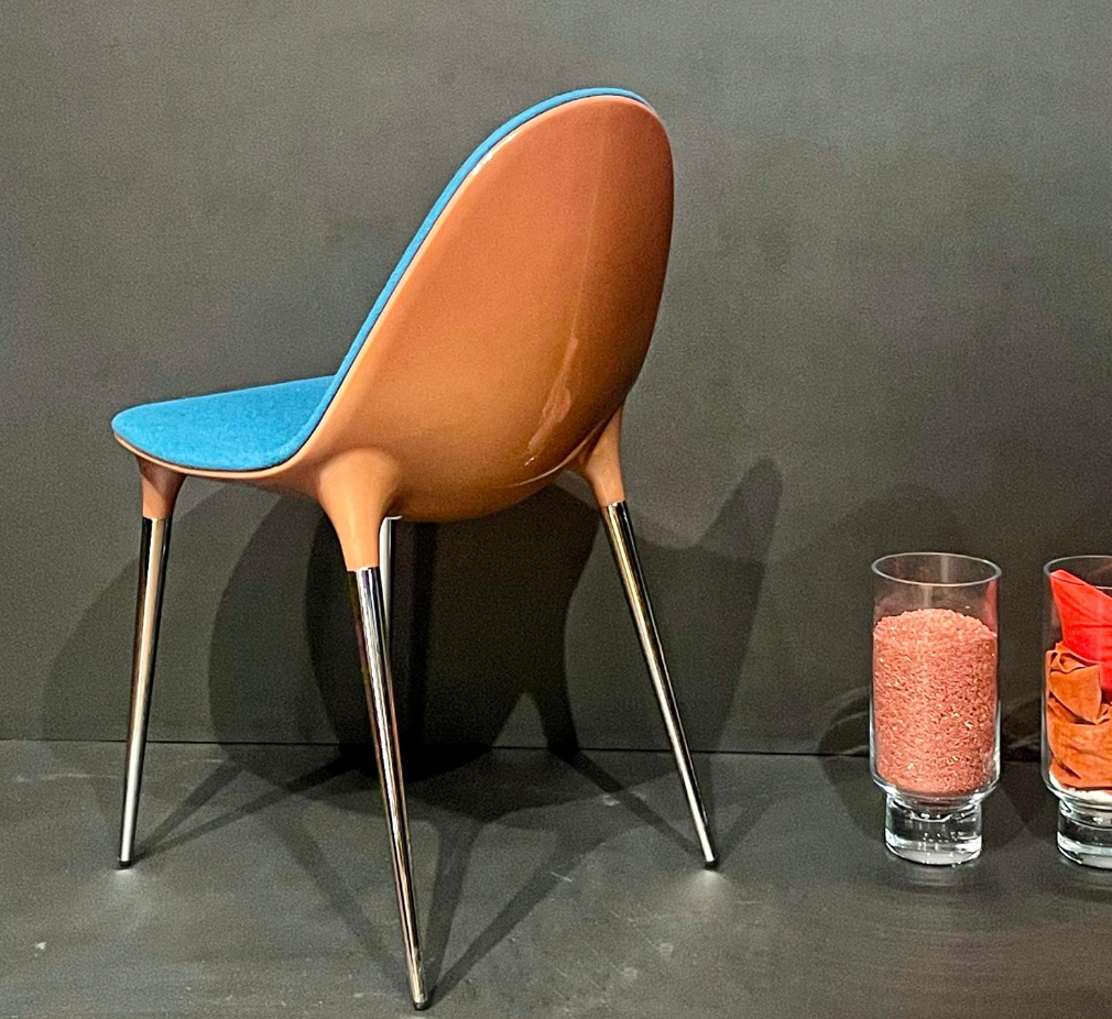 Dank eines patentierten technologischen Verfahrens sind wir in der Lage, industrielle Abfälle von Cassina in formbare thermoplastische Materialien zu regenerieren. Durch einen schlüsselfertigen Ansatz haben wir für Cassina einige Stuhlmodelle, die auf der Design Week 2024 präsentiert wurden, neu aufgelegt.